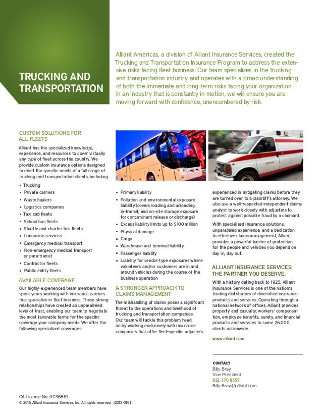 Provides property and casualty insurance coverages for long haul and intermediate truck operations, municipal transit systems, charter buses, contract buses, passenger vans, airport shuttles and limousine services. Policyholder benefits. choosing the right insurer for your limousine business is an important decision. after all, it's your livelihood. in addition to the proper coverages, a great insurer will provide you with value-added services to reduce costs and improve the quality and safety of your operation.